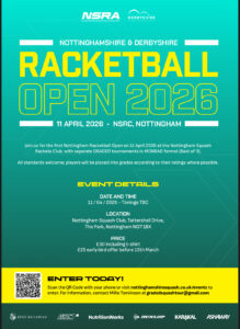 Graded Racketball (Squash57) Tournament at Nottingham Squash Club (NG7 1BX) on Saturday 11th April 2026 (10am~7pm). All standards welcome; players will be placed into grades according to their RacketballLevels ratings (where possible), ensuring everyone gets fairly matched games. All winners will receive a trophy.